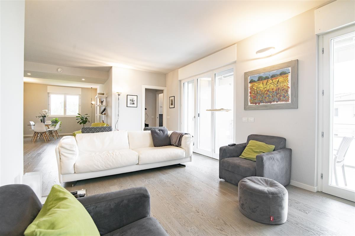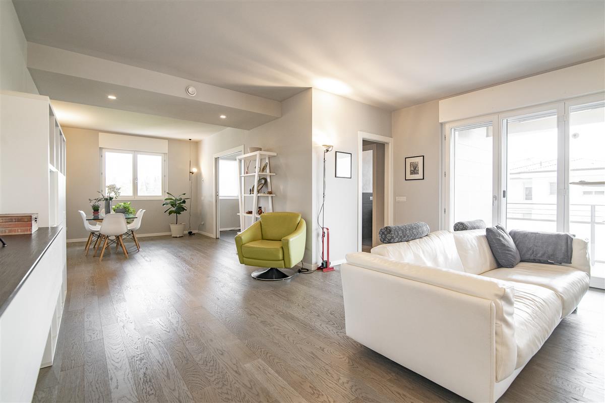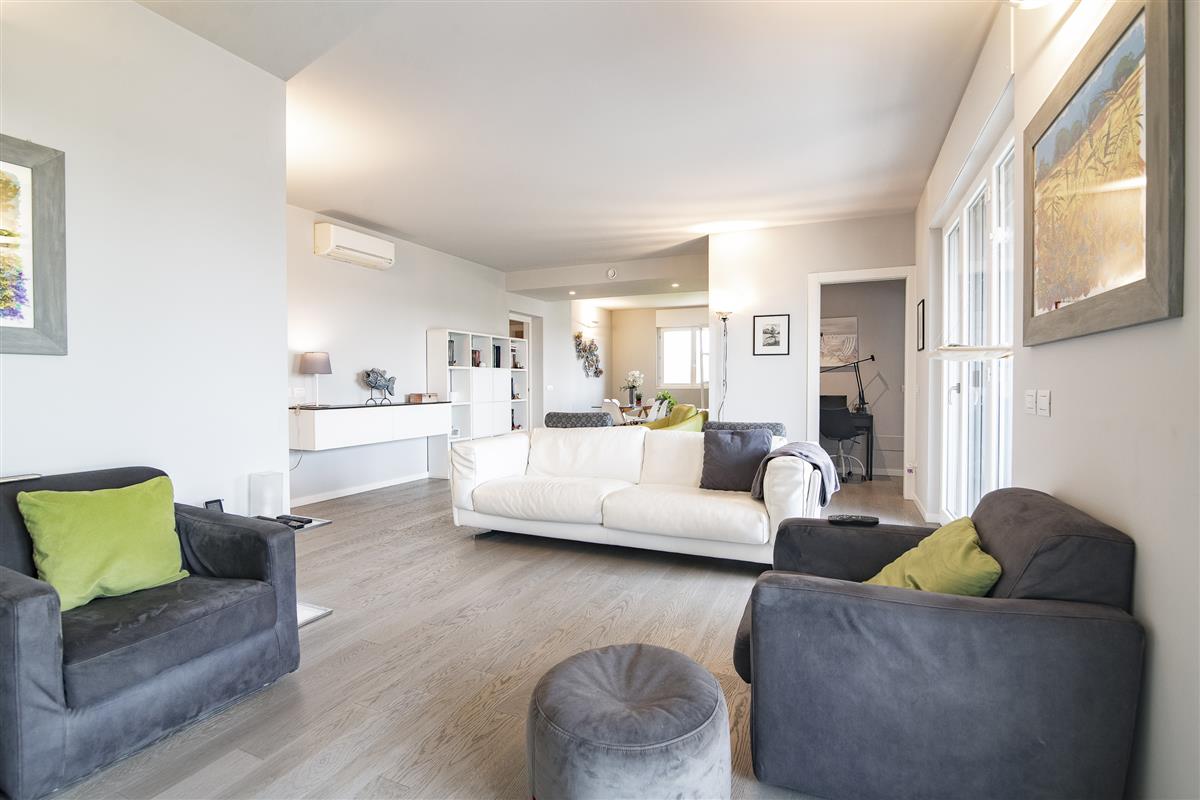 Splendido attico di generose dimensioni di quattro locali più tripli servizi, con due terrazzi, esposizione su tre lati e completo di box doppio ed ampia cantina.