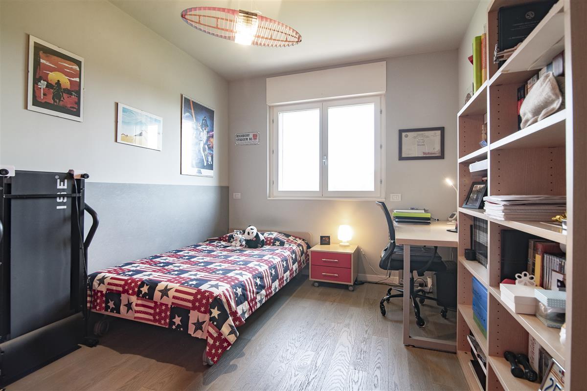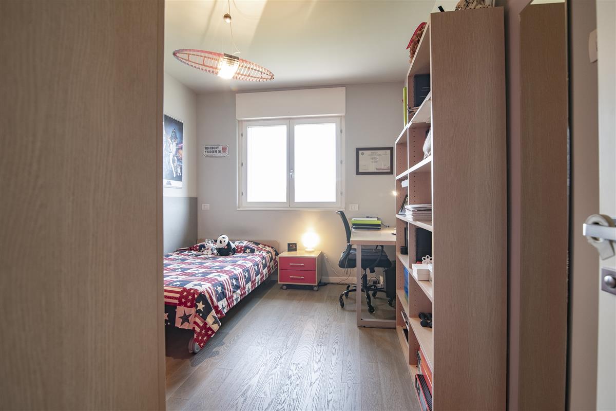 Dal disimpegno della zona notte accediamo ad una camera da letto matrimoniale con bagno in camera, due comode camerette, un ulteriore bagno finestrato ed un locale ripostiglio con attacchi lavanderia.
