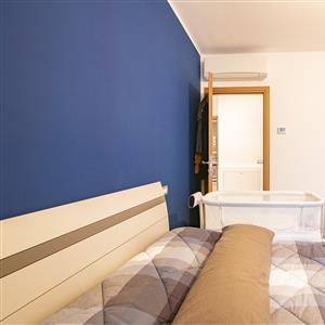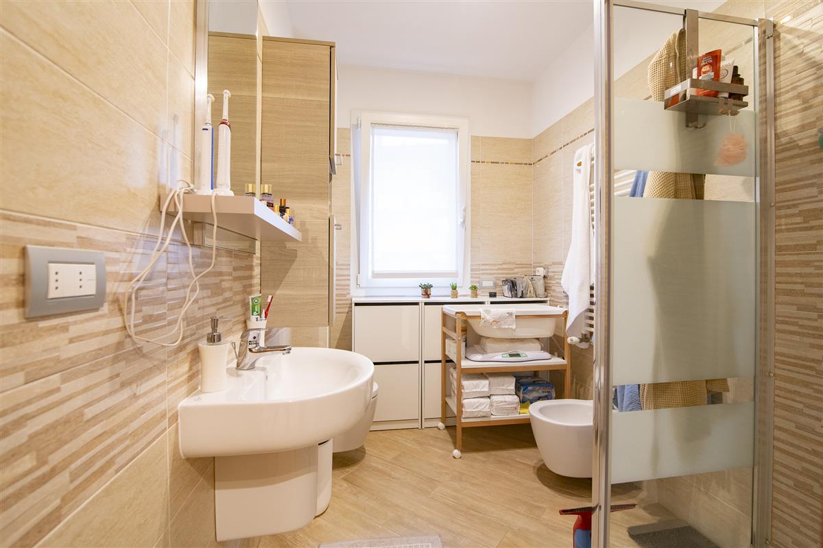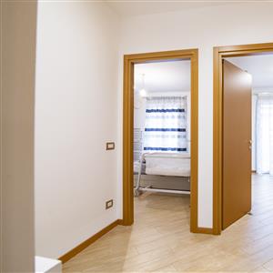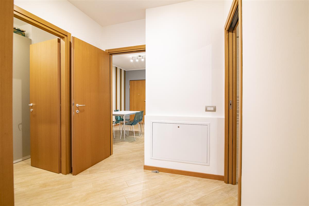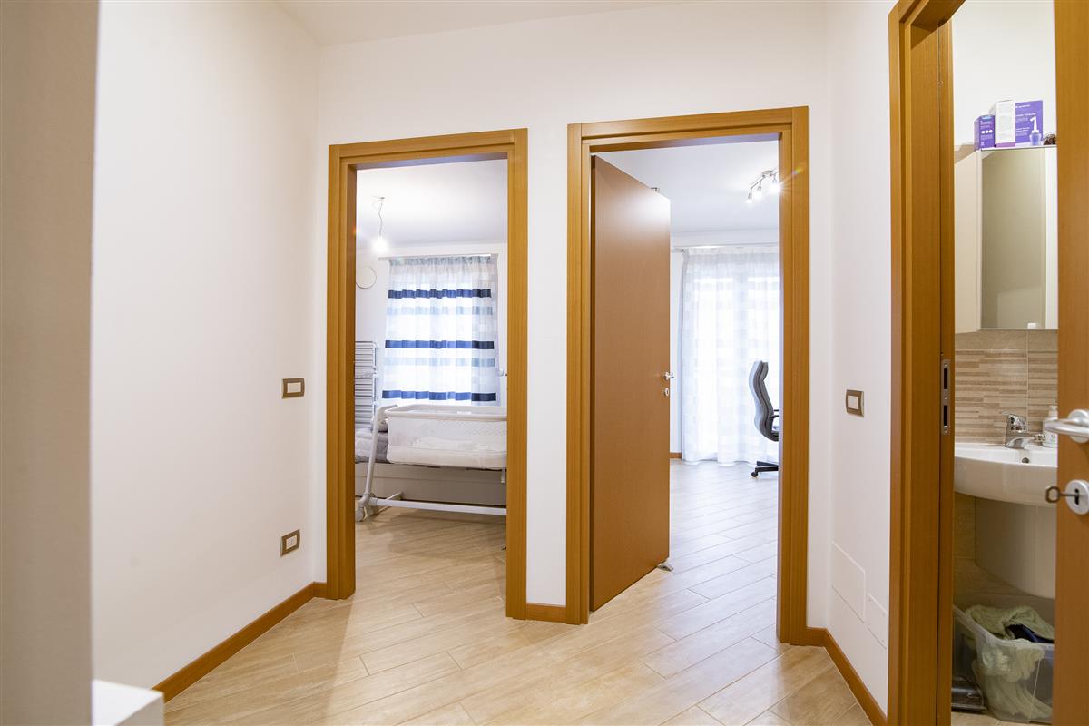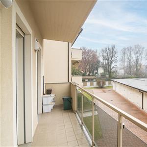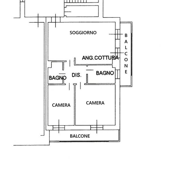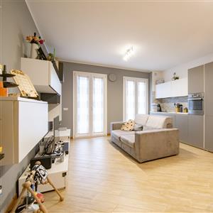 L' immobile è posto ad un primo piano con ascensore e si compone di un soggiorno con angolo cottura, disimpegno zona notte, due camere da letto, doppi servizi e due balconi.