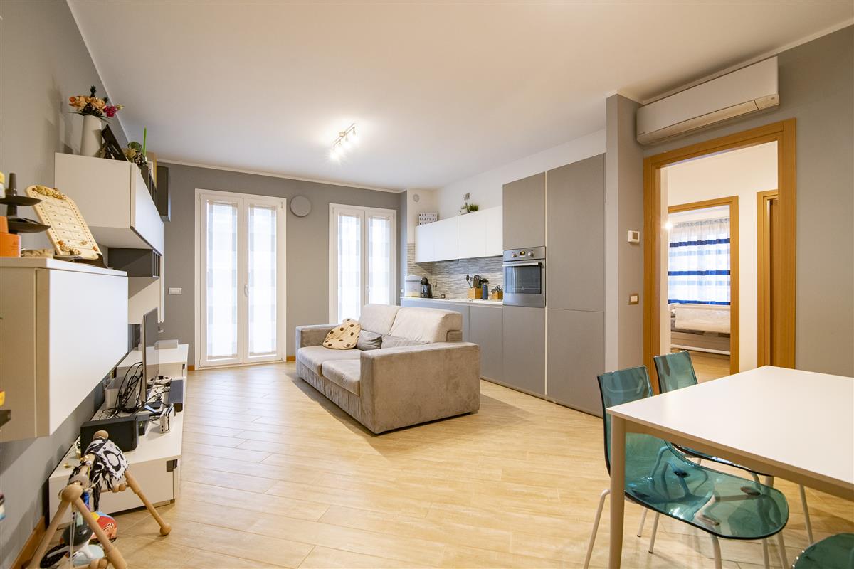 In contesto di recentissima costruzione in classe energetica A, proponiamo tre locali più doppi servizi, completo di box e cantina.
