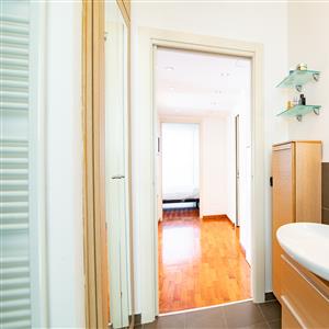Dal disimpegno della zona notte possiamo accedere ad una comoda camera da letto matrimoniale con cabina armadio su misura, una cameretta e due bagni finestrati, di cui uno con zona lavanderia.