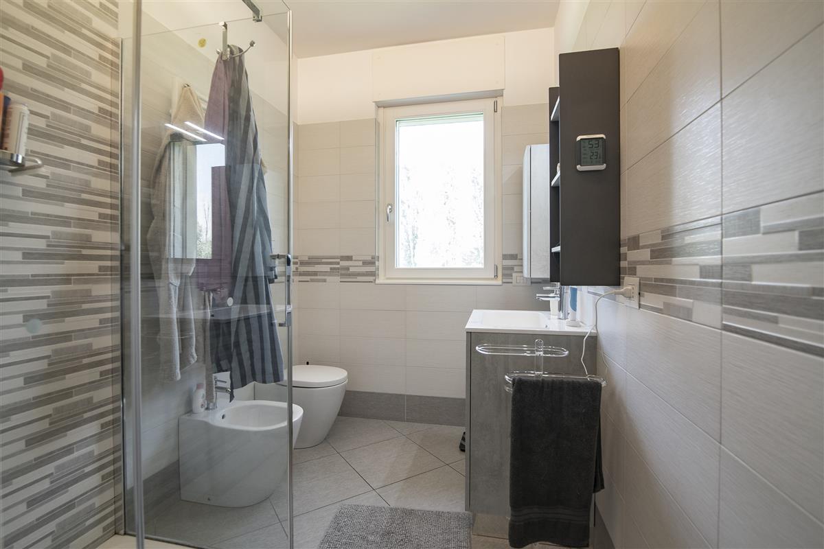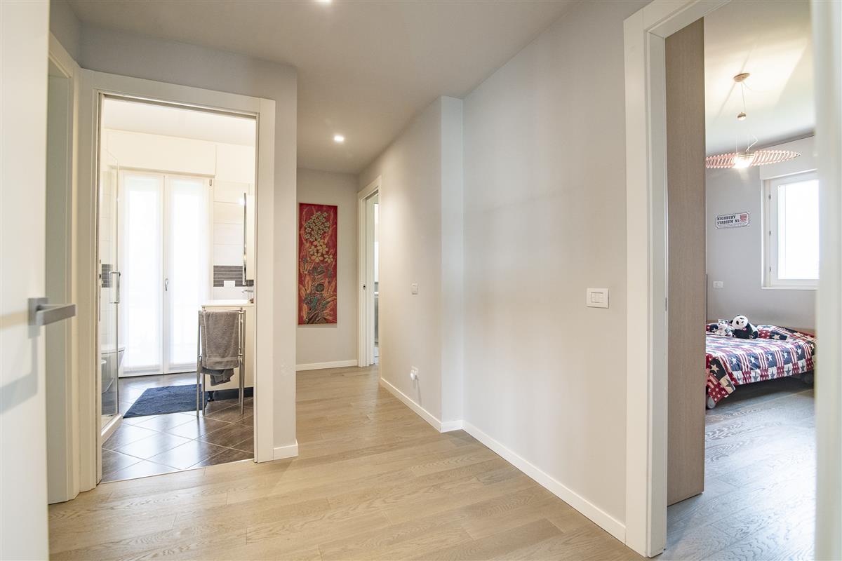 Dal disimpegno della zona notte accediamo ad una camera da letto matrimoniale con bagno in camera, due comode camerette, un ulteriore bagno finestrato ed un locale ripostiglio con attacchi lavanderia.