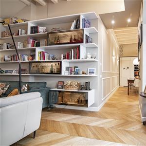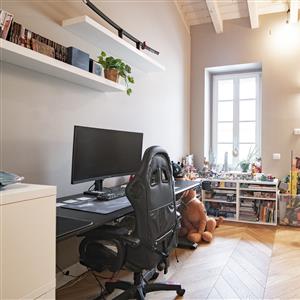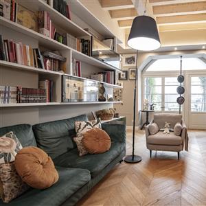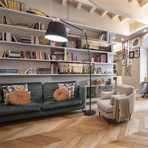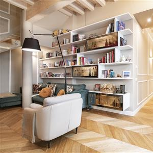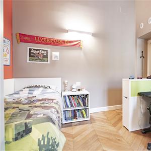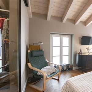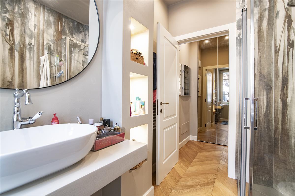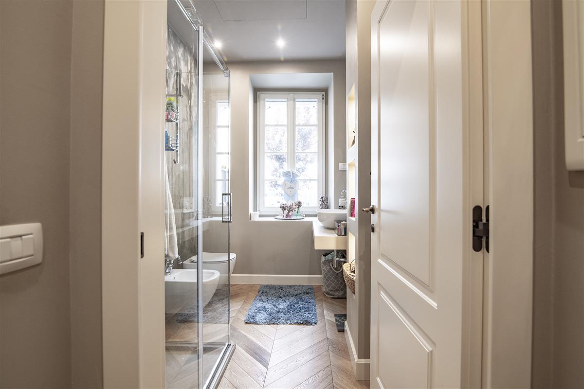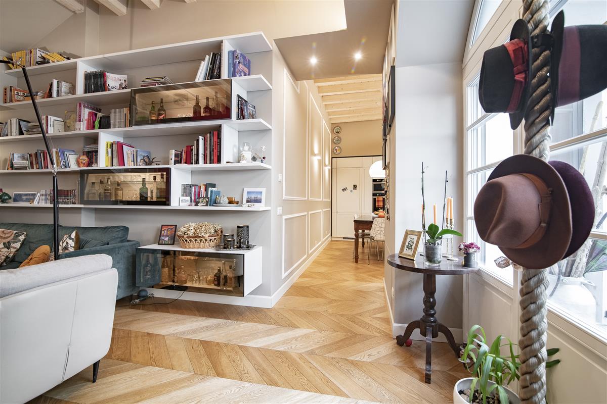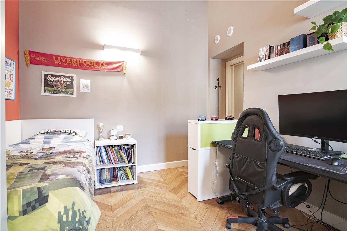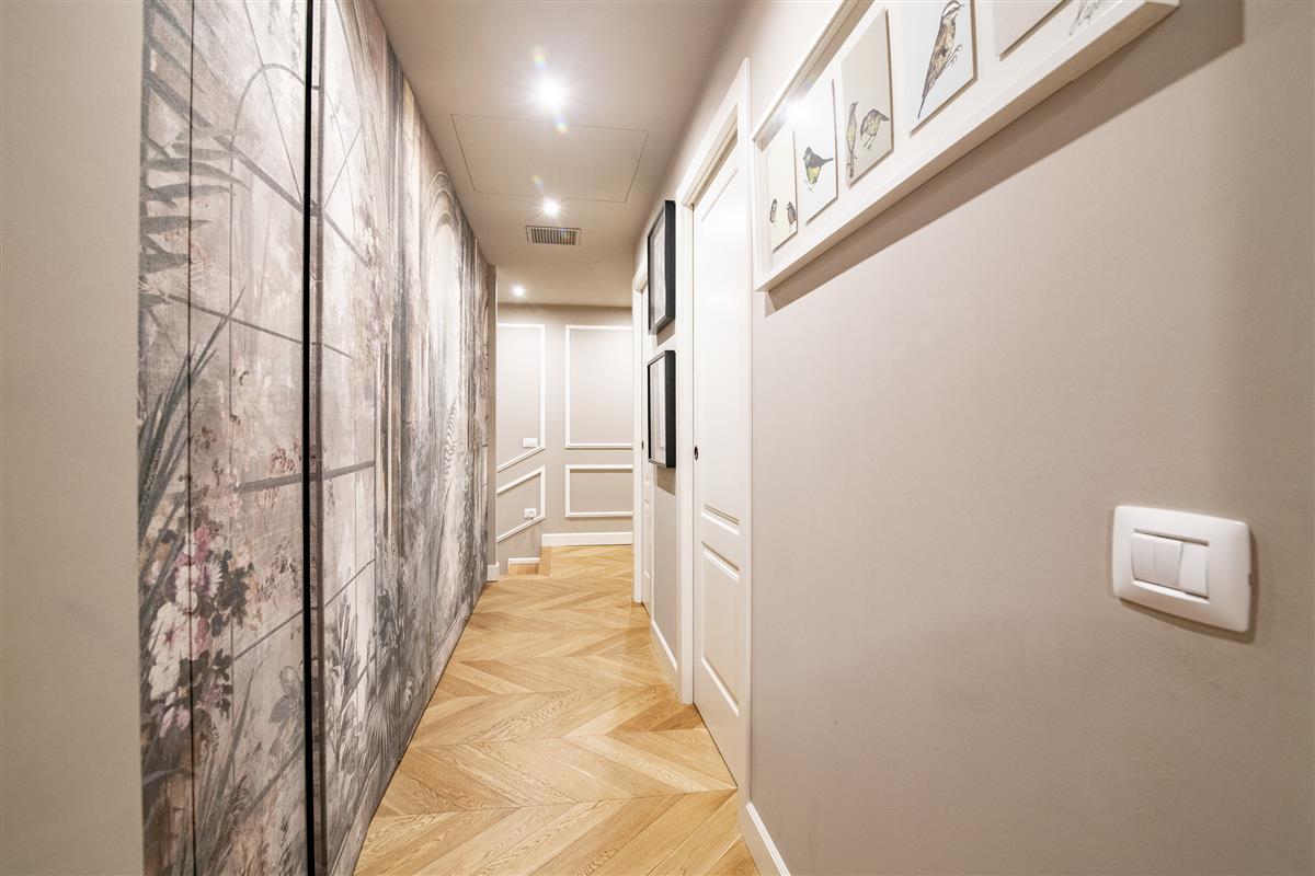 Salendo al piano primo, attraverso una scala con vetrate a tutta altezza, si trova la camera padronale di ampia metratura con cabina armadio, un bagno finestrato con vasca da bagno free standing, una cameretta attualmente adibita a studio, una camera matrimoniale facilmente soppalcabile per ricavare ulteriore superficie.