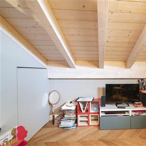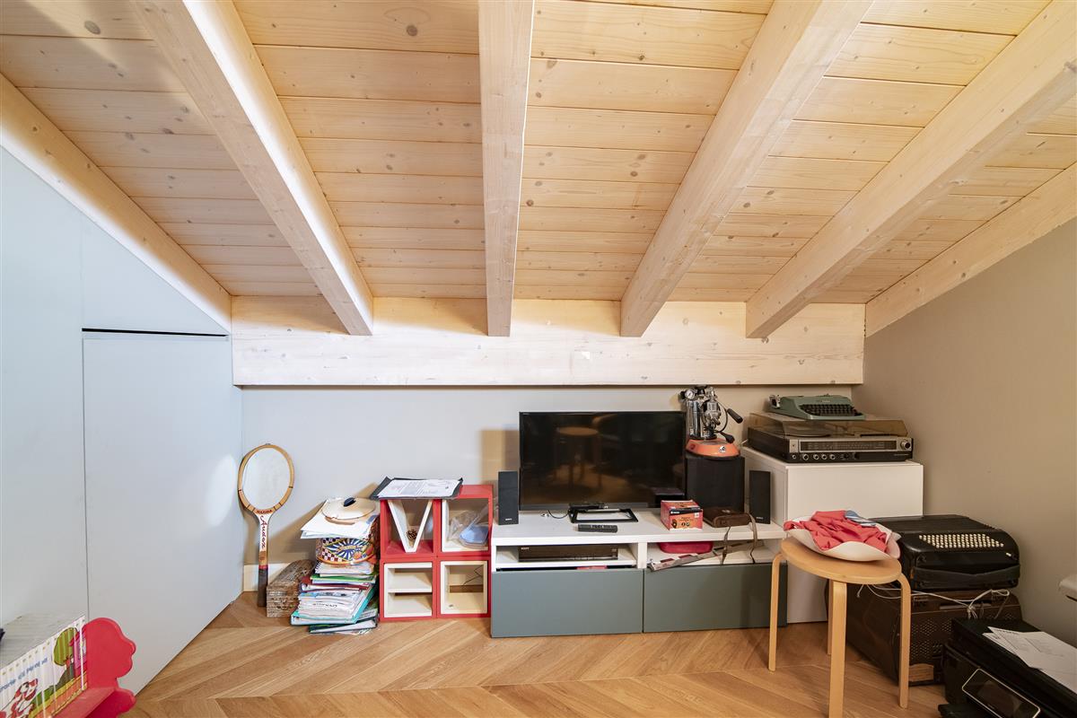 Dal corridoio al piano primo si accede poi alla mansarda adibita a locale hobby con ampio ripostiglio nel sottotetto.