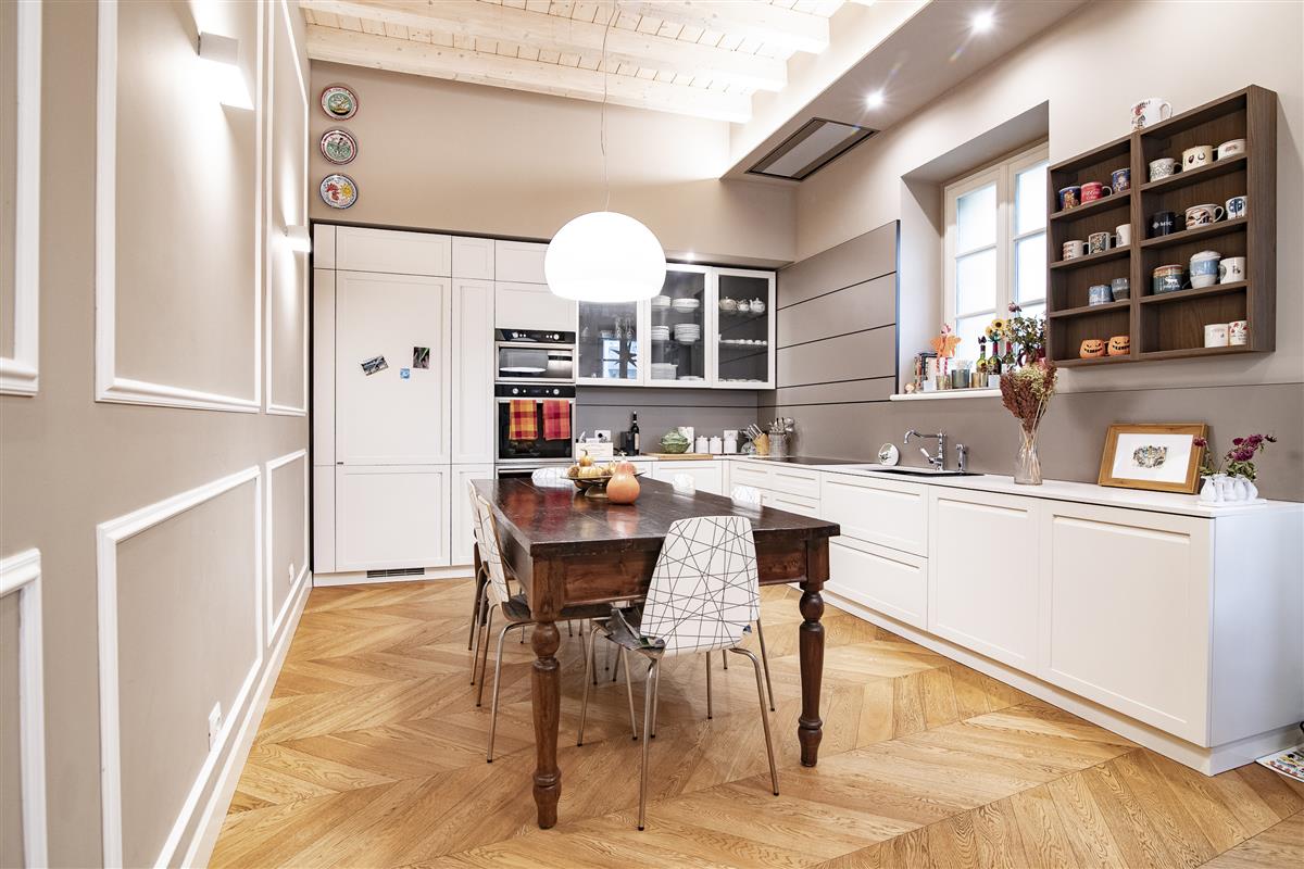 - Cucina Scavolini completa di elettrodomestici (frigorifero, forno da incasso, microonde da incasso, cantinetta per vini da incasso e lavastoviglie);