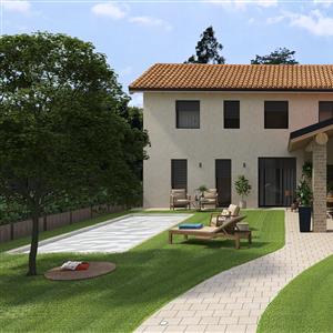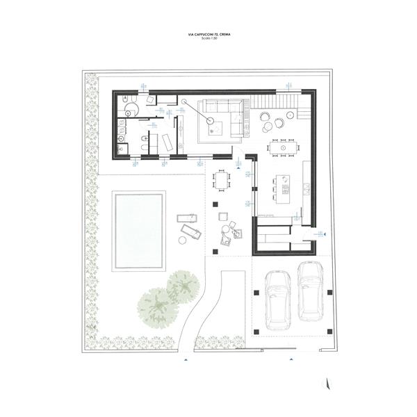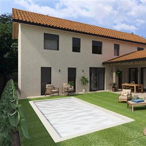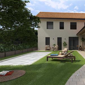 La proprietà è inoltre dotata di due ampi posti auto coperti con accesso diretto all' abitazione, un portico di circa 25 mq ed un terreno privato di circa 250 mq, all' interno del quale è possibile, su richiesta, realizzare una piscina privata.
