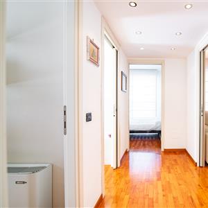 Dal disimpegno della zona notte possiamo accedere ad una comoda camera da letto matrimoniale con cabina armadio su misura, una cameretta e due bagni finestrati, di cui uno con zona lavanderia.